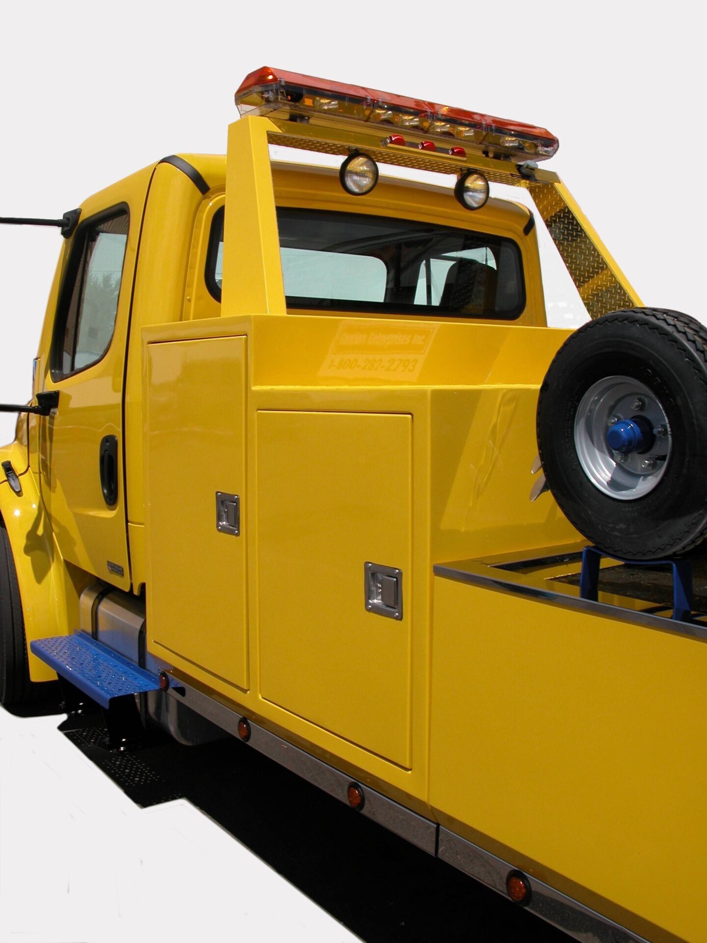 Collins has long provided super high quality, premium, custom built Tunnel Boxes for the towing industry. Collins Tunnel Boxes come with steel or aluminum construction and weatherproof, flush-mounted doors. Optionally, polished aluminum diamond plate and stainless-steel trims are available. Contact us at sales@collinsdollies.com and we’ll work together to build you the perfect tunnel boxes for your truck.
